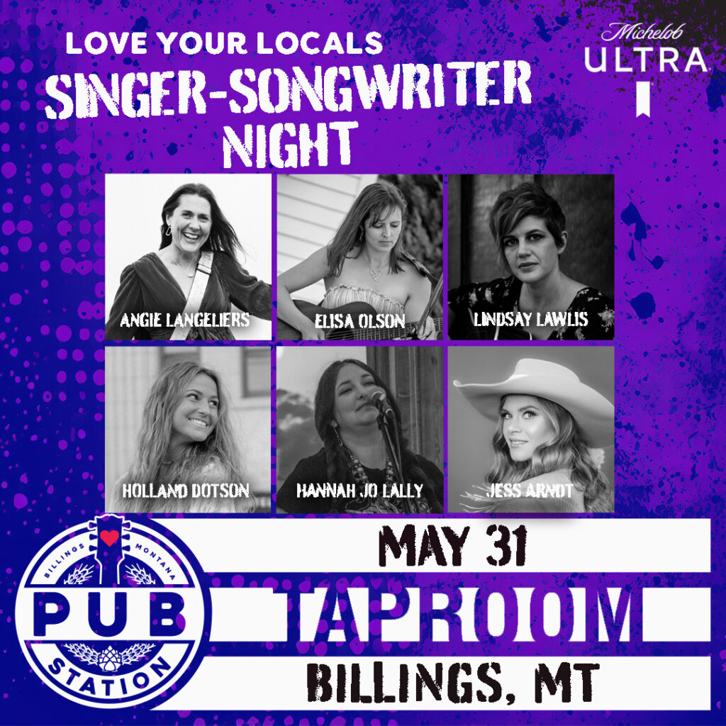 Join us for LOVE YOUR LOCALS: SINGER SONGWRITER NIGHT featuring: Lindsay LawlisElisa OlsonAngie LangeliersHannah Jo LallyHolland DotsonJess ArndtLove Your Locals is an ongoing series at Pub Station that showcases and supports local talent, as well as provides music industry education opportunities throughout the year. LOVE YOUR LOCALS is Sponsored by Michelob Ultra.Etix is the ONLY authorized ticketing agent outside of the Pub Station box office. If you purchase tickets from an unauthorized agent in the secondary market (scalper, ticket broker, eBay, Craigslist, etc.), you risk purchasing counterfeit or invalid tickets which may result in refusal of admission.