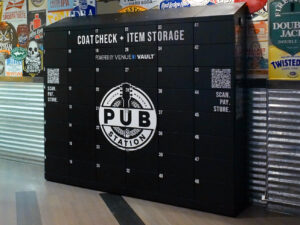 Venue Vault smart lockers are available to rent next to the bathrooms in our Ballroom and Taproom. Individual locker dimensions are 9” high, 15.5” wide, and 18” deep, perfect for storing multiple coats, vinyl, merchandise, and more! For more information, click here: https://www.entertainmentlockers.com/event/the-pub-station/